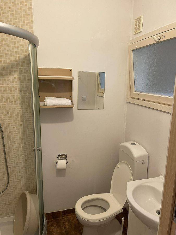 W każdym domku znajduje się łazienka (która obejmuje prysznic, toaletę oraz umywalkę), czajnik elektryczny oraz zestaw talerzy i sztućców dostosowany do liczby osób.